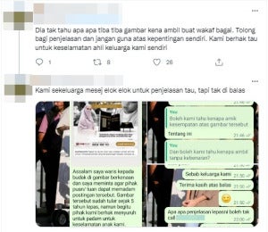 Namun, apabila ada pihak yang memuat naik dan sebar dalam media sosial, ia seolah-olah tidak menghormati kami sebagai ibu dan ayah Bilal… Melangkaui kami pula.