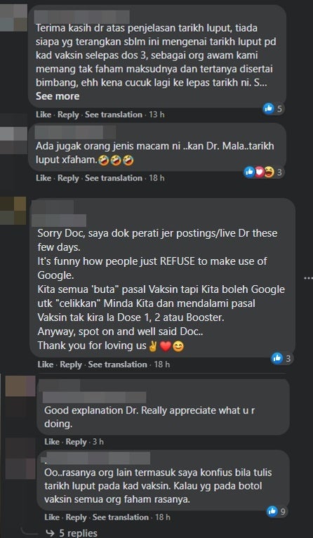 Perkongsian itu telah mendapat perhatian netizen di bahagian komen kerana penjelasan Dr. Malar itu disifatkan sebagai explanation yang penuh dan logik sekaligus menjawab segala persoalan yang tak berasas.
